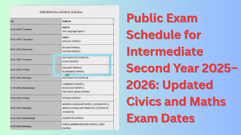 Public Exam Schedule for Intermediate Second Year 2025β2026: Updated Civics and Maths Exam Dates Intermediate 2nd Year 2025β26 timetable A …
